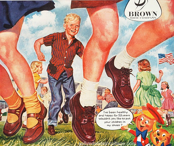 Because the number of US small fry kept rocketing upward at a phenomenal clip it was a business bonanza with shoe dealers competing for the right to dress your youngsters feet, dangling bold promises that with their shoe they’d outperform any other.