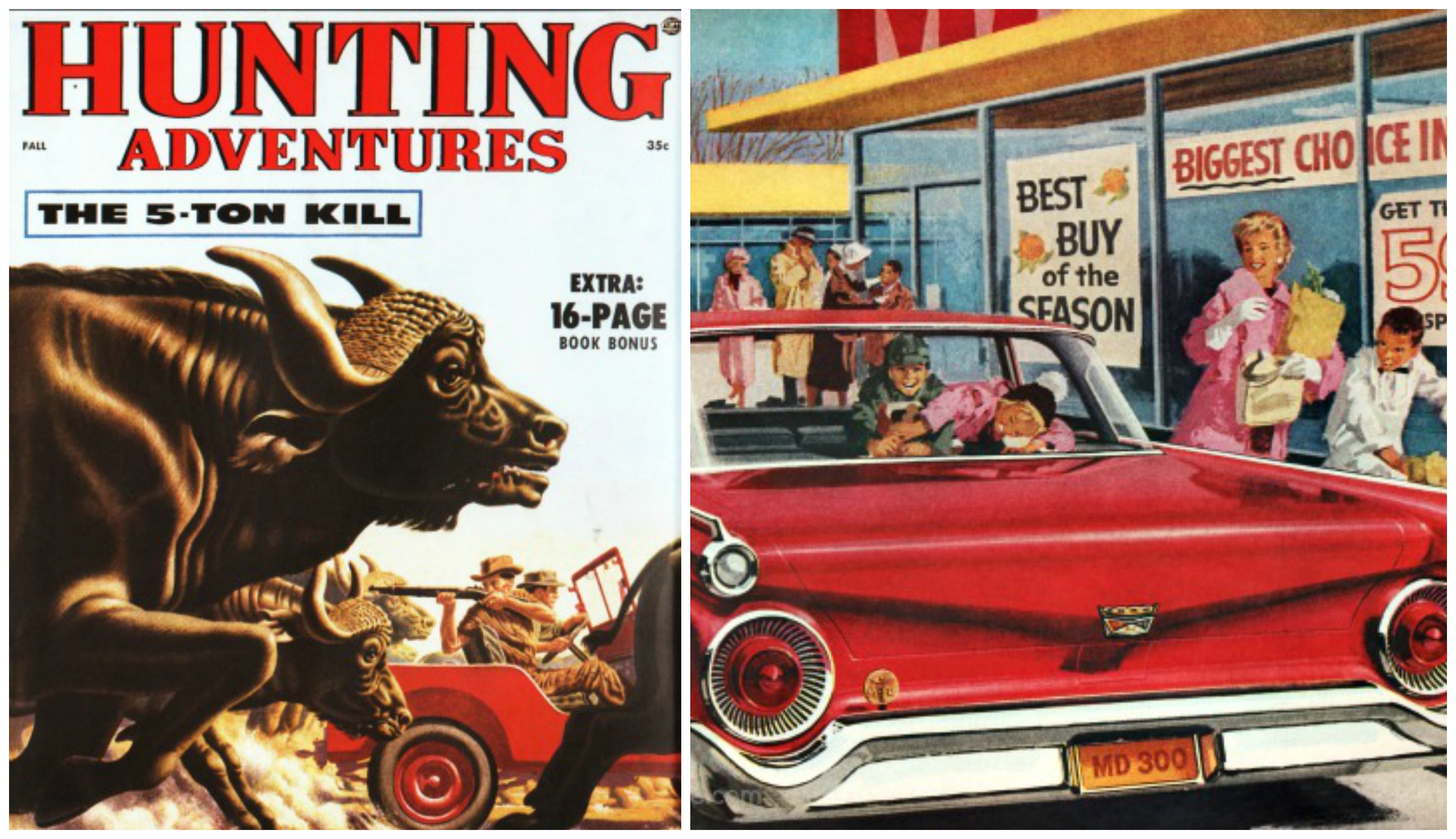 vintage pulp mens magazine hunting supermarket shopping illustration