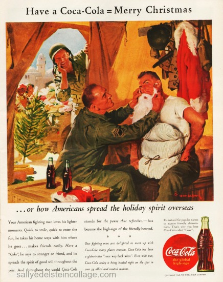 “Your American fighting man loves his lighter moments. Quick to smile, quick to enter the fun, he takes his home ways with him where he goes…makes friends easily. Have a Coke he says to stranger or friend and he spreads the spirit of good will throughout the year.”