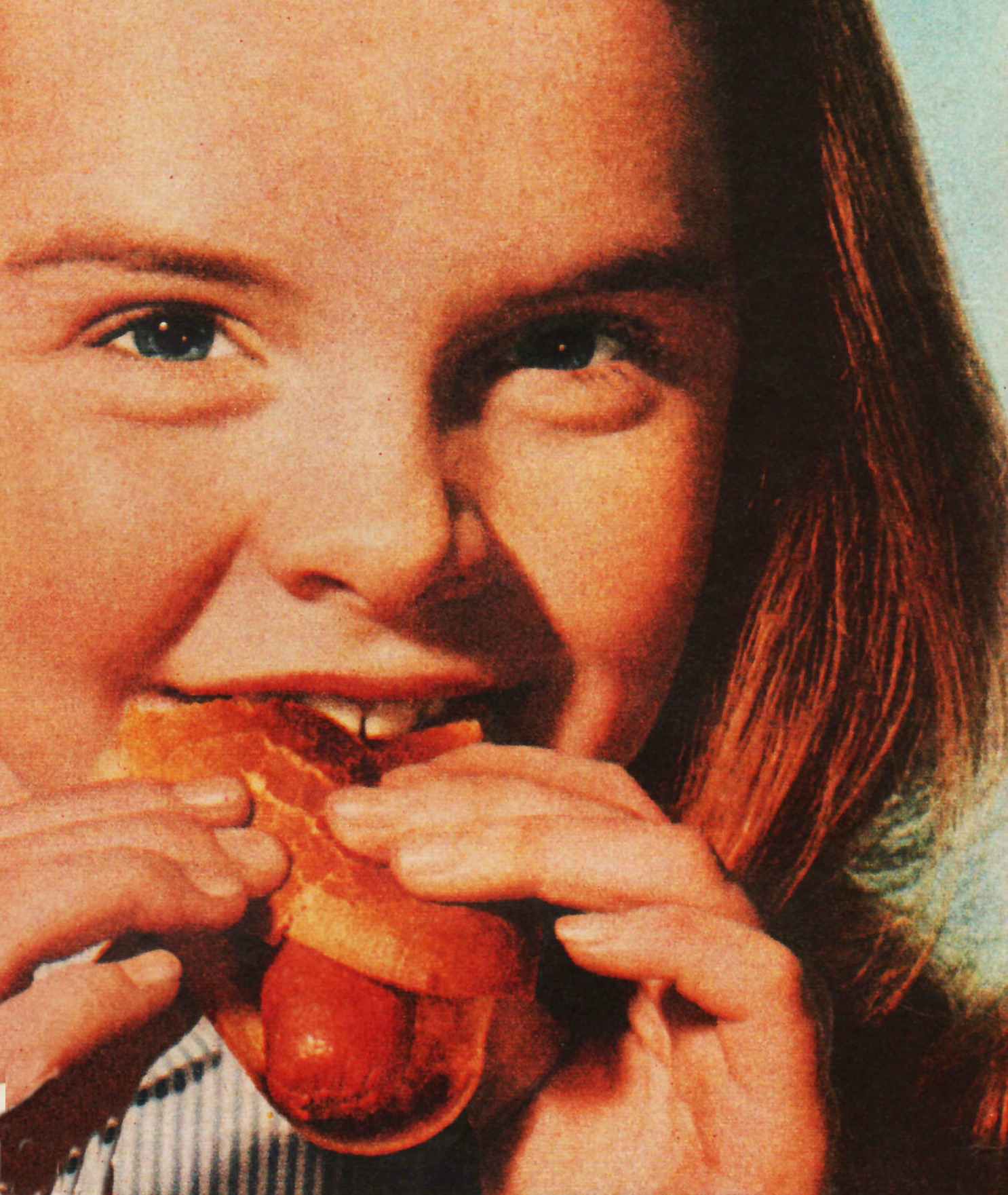 1950s girl eating hot dog