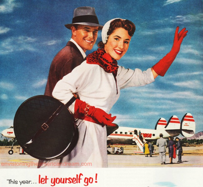 Travel hungry post- war Americans were venturing out into the cold war world like never before traveling to new and exotic locals. “With fabulous 5 miles a minute speed of today’s planes,” TWA enthused, “you’ll soon discover the whole worlds within easy reach.”