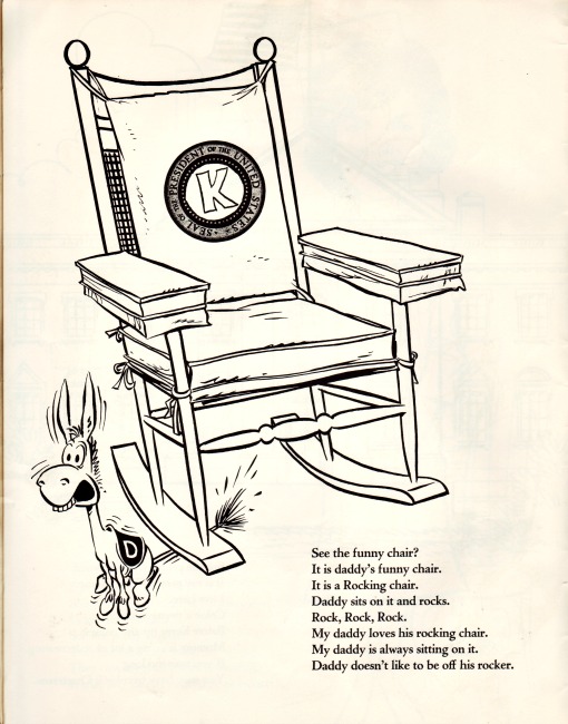 So it was no surprise that 1962 along with a toy nurses kit and a 6 room split level doll house I received a “JFK Coloring Book” for Chanukah. It didn’t matter that the book illustrated by Mort Drucker of MAD magazine fame was a tongue in cheek satire of the Kennedy’s meant more for the cocktail party set than the milk and cookies set.
