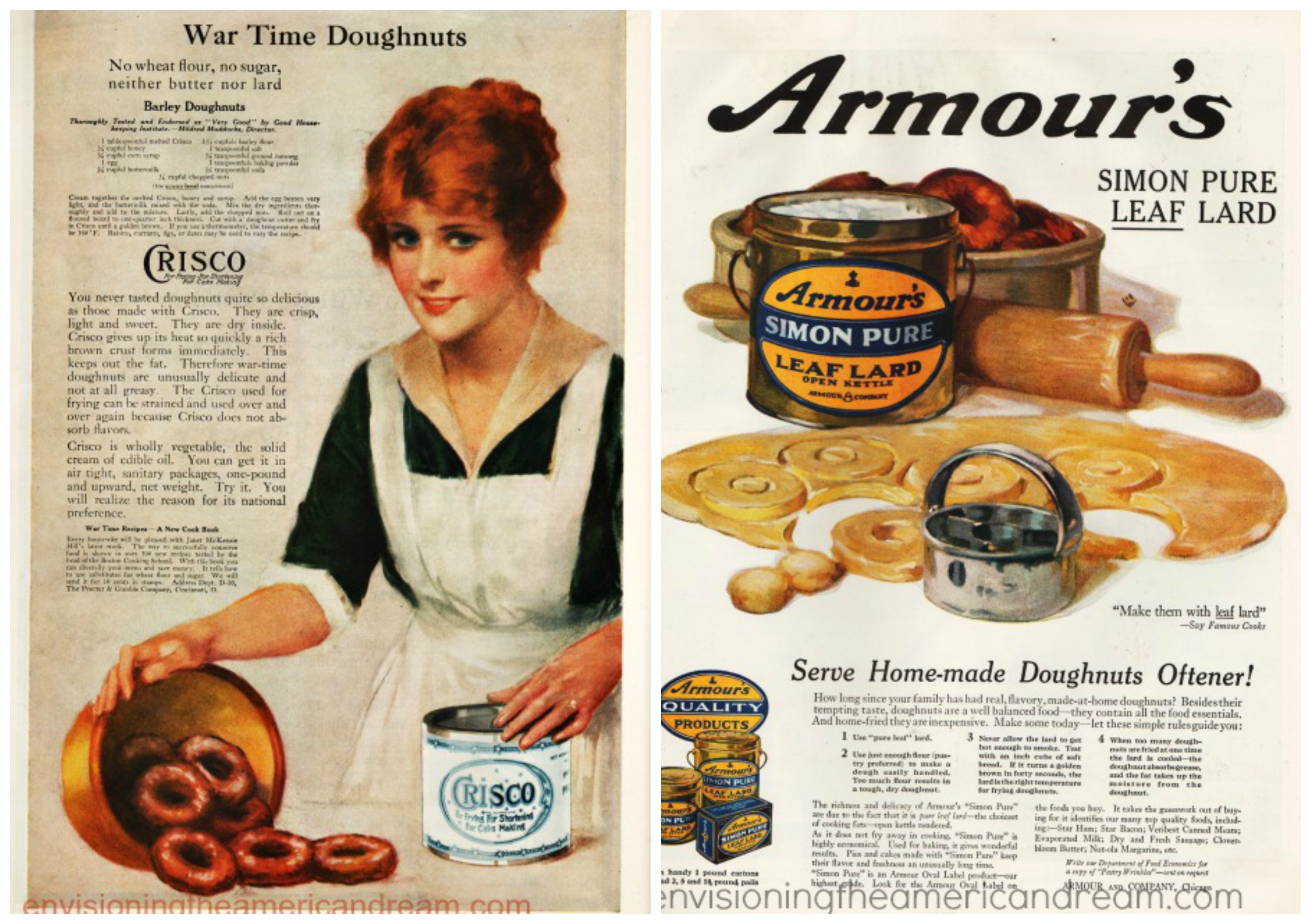 (L) Vintage Crisco Ad 1918 (R) Vintage Armor Lard Ad 1915