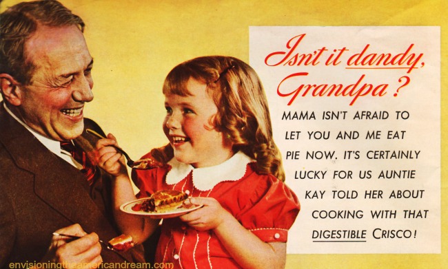 “Sweet dreams follow a Crisco supper.” Clogged arteries would follow a lifetime of trans fats.