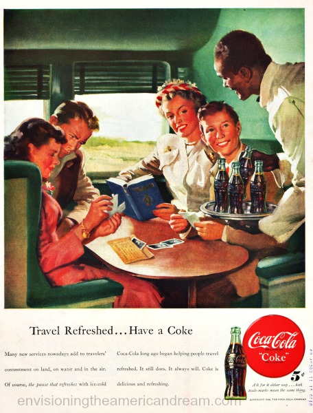“Travel refreshed,” Coke urges the reader of the ad. “Many new services nowadays add to travelers contentment.”