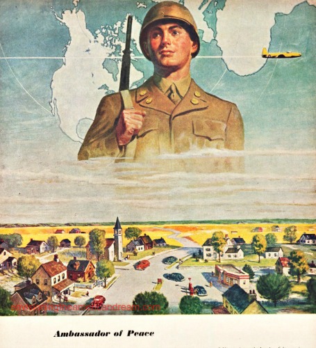 Ambassador of Peace- 1948 Vintage Ad US Army and US Air Force Recruiting Service “Your Army and Your Air Force Serve the Nation and Mankind in War and Peace.” A popular ad that ran in 1948 appointed the American soldier as Ambassador of Peace, whose task simply put was to help the nations of the world in their efforts to balance the peace of the world at a time when too many people have despaired of peace, inviting the reader to be his companion in arms.