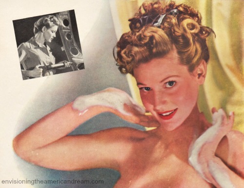 Even as Rosie manned up she didn’t want to lose her feminine appeal. Keeping herself attractive was her patriotic duty. As Uncle Sam put it “Beauty is Miss Americas Badge of Courage.”