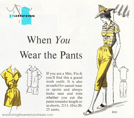 While advertisements for power motors often showed scantily clad young women in short shorts and dresses to attract the attention of the male reader, Martha chose sensible poplin peddle pushers, foregoing the pumps for a pair of good ol’ Keds.