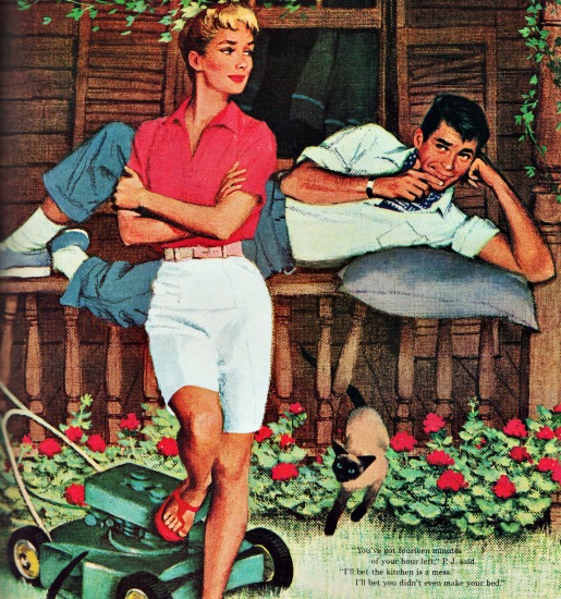 Despite the best efforts of ad men, men dug their heels into their turf and lawn mowing remained a male domain, then as now.