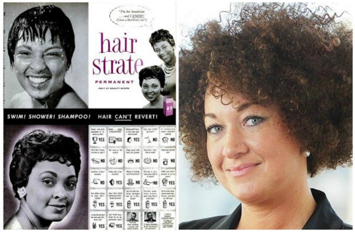 Rachel Dolezal and vintage ad Hair Strate for Blacks