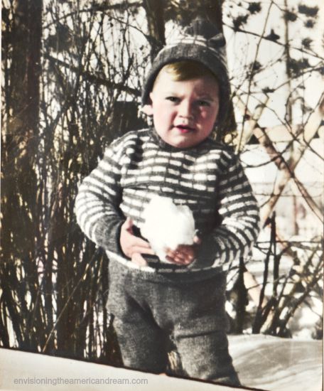 Is that a concealed weapon in that snow ball? A 2 year old displaced child in DP camp Germany. Photo Family collection