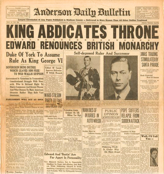 King Edward abdicates headline