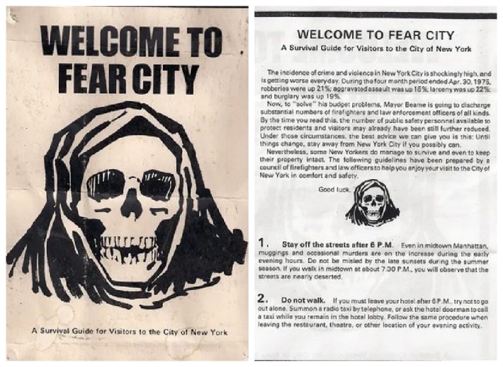 That summer, visitors coming to the Big Apple were not greeted by a plethora of paraphernalia proclaiming I Love NY but with an ominous paper pamphlet entitled “Welcome to Fear City: A Survival Guide for Visitors to the City of New York.”