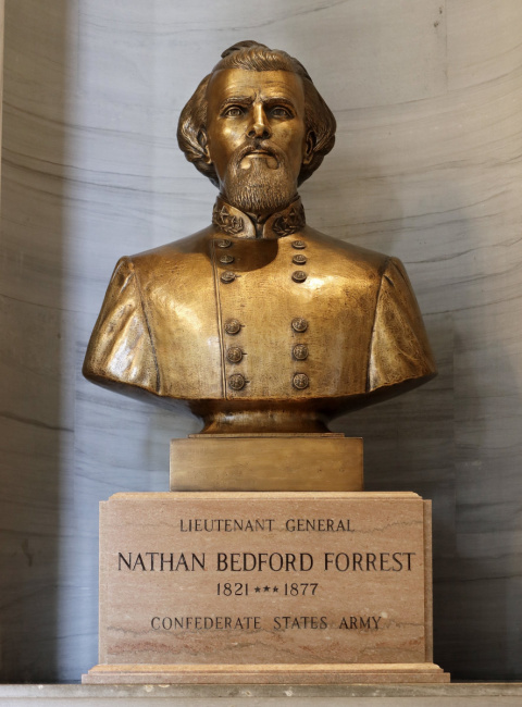 A bust of Nathan Bedford Forrest is displayed in the Tennessee State Capitol Thursday, Aug. 17, 2017, in Nashville, Tenn. (AP Photo/Mark Humphrey)