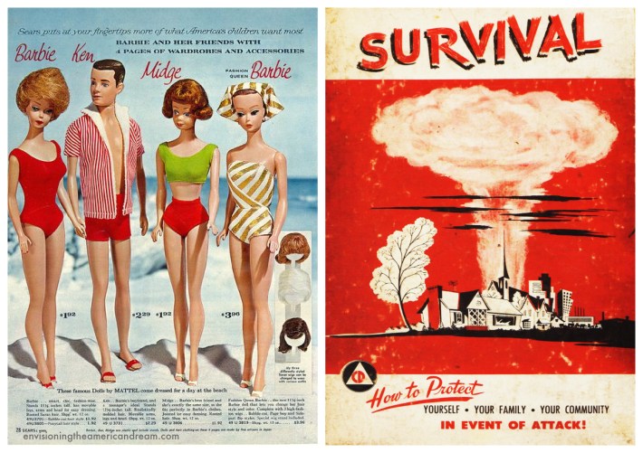 I never forgot the lesson that our world could someday end in a flash of light and heat while I was crouched helplessly under my desk or tucked safely in my bed. Though I never did get that home fall-out shelter or Barbie’s Dream House for that matter, playtime with Barbie and Ken would always include having them duck and cover.
