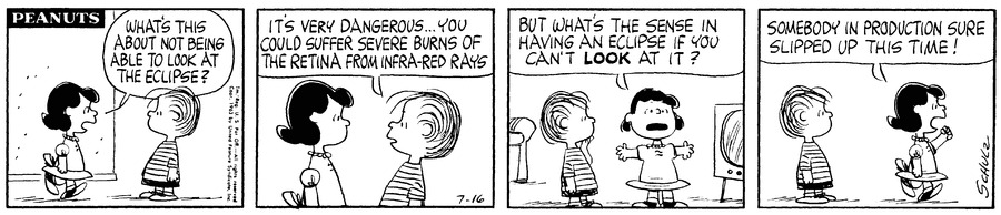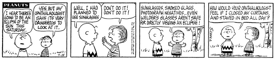 Charlie Brown and the gang offered their own sound advice for eclipse watching explaining it over 5 days from July 15- 20th.
