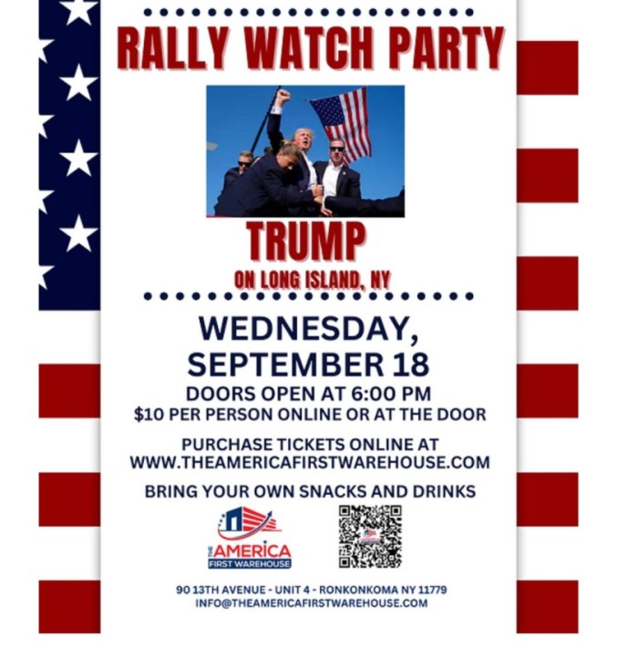 Rally watch party wed The american First warehouse