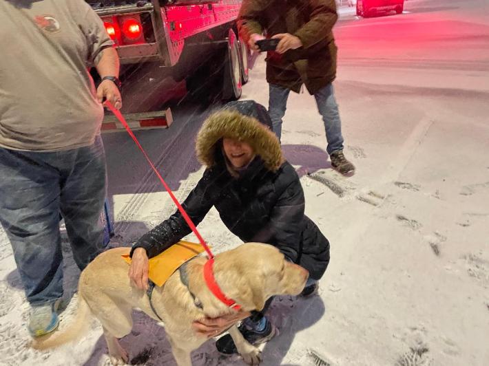 The snow was coming down hard as we stood at the back of the truck. We were the only ones there. When a handler called out asking: “Who’s here for Monte?” I raced forward.