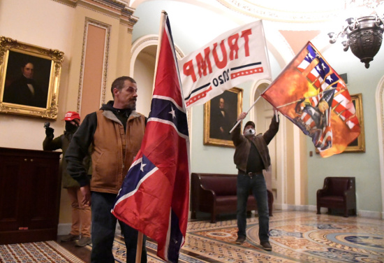 Supporters of President Donald Trump demonstrate on the second floor of the U.S. Capitol building in Washington near the entrance to the Senate after breaching security defenses Jan. 6, 2021. (CNS photo/Mike Theiler, Reuters)