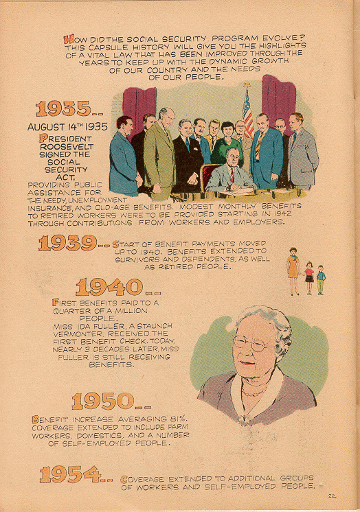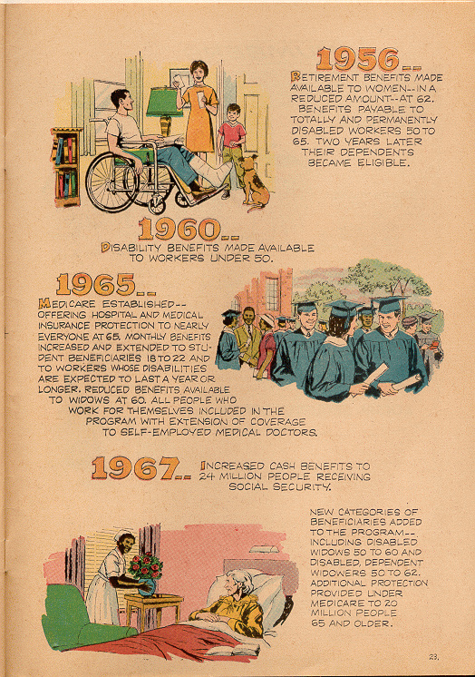 I had dim recollections of the comic books explaining social security we were given in fifth grade. The same year Walt Disney told us girls all about Menstruation in a females-only film, my classmates were all handed out booklets issued by the government social security.