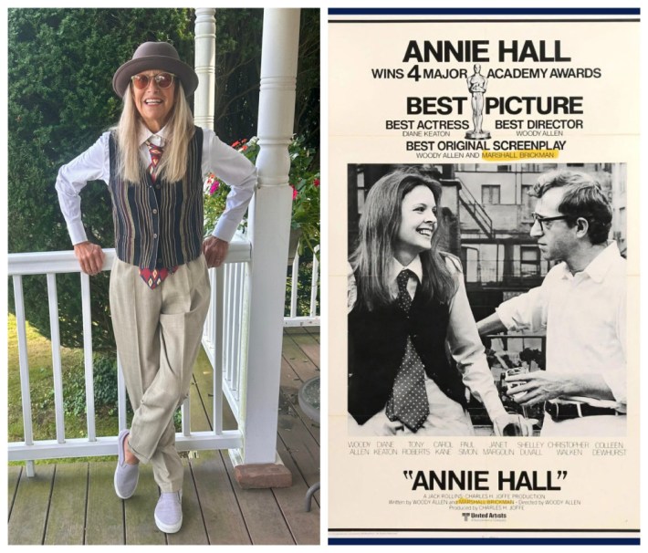 You can’t think of Diane Keaton without conjuring up the image of her as Annie Hall. It not only is the role that won her a best actress Oscar but the one that launched her as a style icon, introducing the world to her idiosyncratic look.