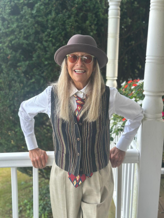 But now here I am at seventy, La- Di- Da, dressed in a homage to Diane Keaton and an homage to the me that first fell in love and identified with everything about her 48 years ago.