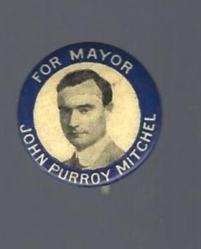 In my basement is a cedar cigar box filled with a jumble of dozens of old political campaign buttons. Nestled among the common “I Like Ike” and “Vote for Kennedy” buttons, and the more obscure “Clean House With Dewey” pins, is a single battered button declaring “John Purroy Mitchel for Mayor.”