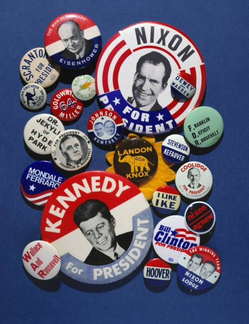 I found it several years ago while cleaning out my parents’ house in one of the dozens of “junk drawers” my mother kept.  Like so many other collectibles in my mother’s possession that were often found buried among decades-old receipts, unidentified keys, rubber bands, and 1939 World’s Fair Heinz pickle pins this campaign button was stuck between two clipped coupons for Jello that expired in 1976.