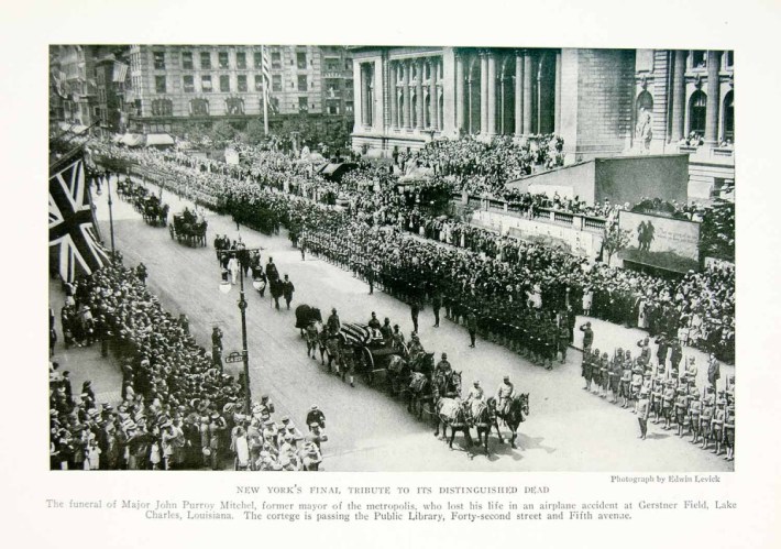 18-year-old Sadie and her schoolmates were part of the millions who lined city streets, from City Hall to St. Patrick’s Cathedral, silently witnessing the horse-drawn gun caisson that bore Mitchel’s flag-draped casket. Their numbers—larger than those mourning either Grant or Sherman—stunned observers. A squad of 20 planes dropped flowers on the mourners. Former President Theodore Roosevelt, who had been a big supporter of Mitchel, served as an honorary pallbearer.