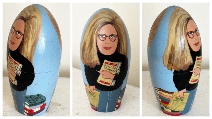 In 1996, I had created a nesting doll of all the different parts of my creative self, and this particular doll in the group was the writer/researcher me. I guess black turtlenecks and stacks of books have been my thing for decades