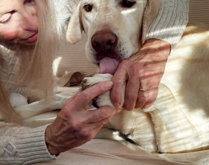 She said she knows my blonde lab from early morning walks with my husband, Hersh.