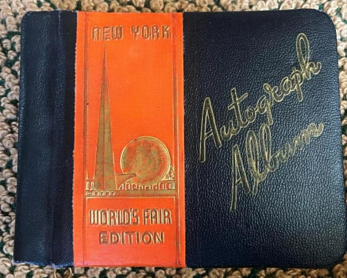 The rectangular autograph book with the gorgeous blue and orange leather cover commemorating the N.Y. World’s Fair 1940 was already familiar to me.