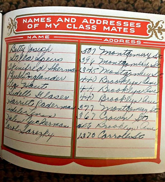 To see in print that my mother, Betty Joseph, was voted “Most Cheerful” in her 1940 Brooklyn elementary school graduating class was heartwarming. To receive this never seen before images from the autograph book of her best friend Florette Shapiro, 86 years later, was magical.