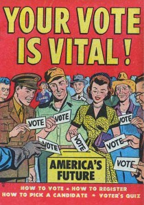 In 1952, Harvey Comics offered a public service guide for mid-century Americans on the importance of voting. This 16-page U.S. Government giveaway was distributed to encourage citizens to exercise their right to vote. Times have changed, but the message to